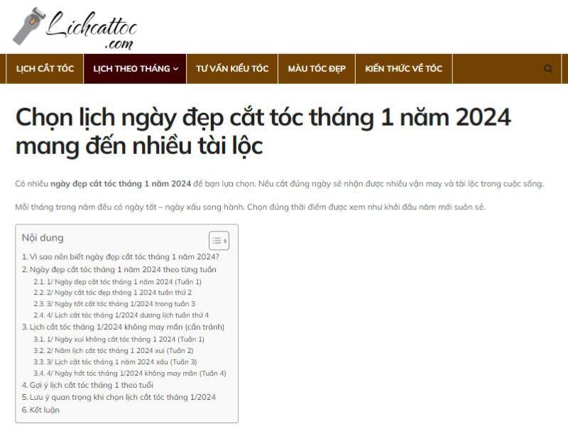 Website Lịch Cắt Tóc hiện nay đang dẫn đầu trên thị trường Việt Nam về kiến thức làm đẹp. Thương hiệu này đầu tư chuyên sâu và chỉ xoay quanh những vấn đề có liên quan đến làm tóc.